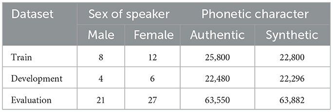 The experiments were conducted utilizing the ASVspoof 2019 database (Nautsch et al., 2021), which is an English speech corpus constructed upon the VCTK library comprising natural and synthetic speech samples, organized into LA and PA subsets. The study investigated speech synthesis and voice conversion attacks using the LA subset. This dataset is partitioned into training, development, and evaluation sets for structural coherence, with the training set containing 25,380 speech samples, the development set 24,844, and evaluation set 71,237, as detailed in Table 2, and there is no speaker overlap between subsets.