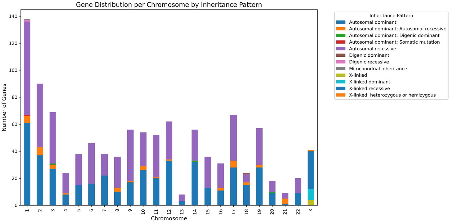 Figure 4. Gene distribution per chromosome by inheritance pattern.
