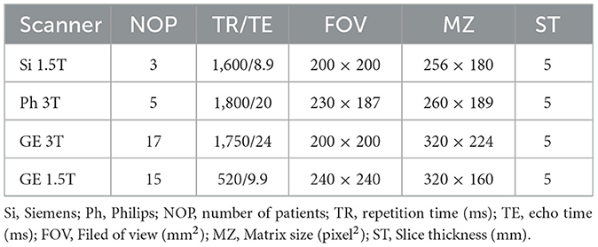 T1-weighted MRI images were analyzed in the present study. They were recorded using different scanners, i.e., Siemens, Philips, and General Electric (GE), with two different magnetic field strengths, i.e., 1.5T and 3T. Details of the scanners and their parameters are summarized in Table 1. In each MRI image, the brain areas containing LA were annotated as the ground truth by one experienced neuroradiologist from XH-SJTU-SM using the well-known ITK-SNAP toolbox (Yushkevich et al., 2006). An representative examples of LA in T1-enhanced MRI and the corresponding annotations is shown in Figure 1. Note that marking only the abnormal intracranial vessels in the MRI image was quite difficult and therefore was not considered in the present study.