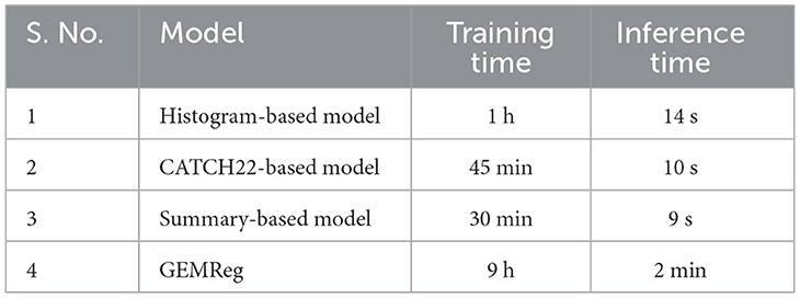 Table 5. Training and inference times for individual feature-based components and the overall GEMReg framework.