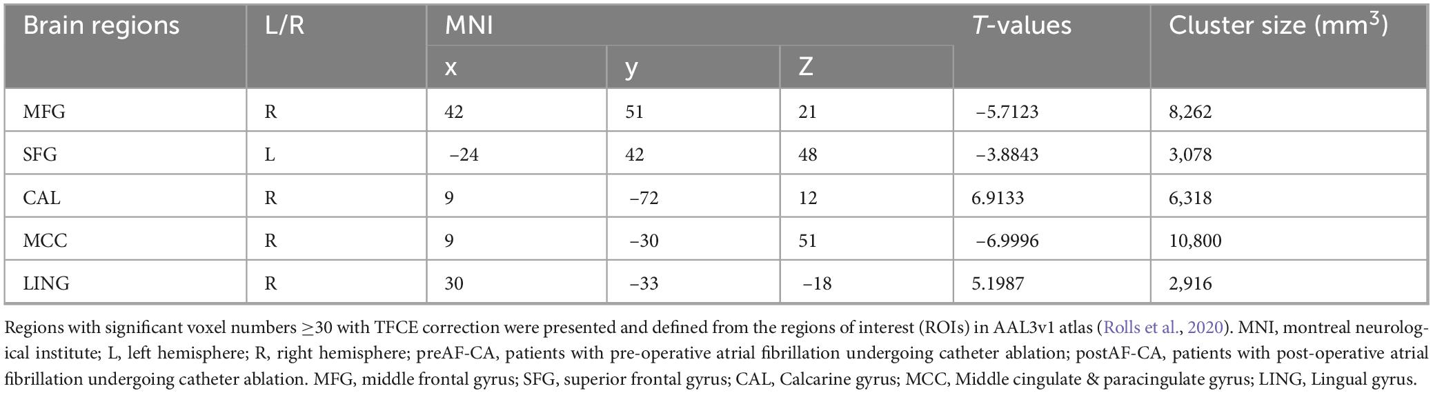 Table 4. Hippocampal functional connectivity differences between the preAF-CA group and postAF-CA group.