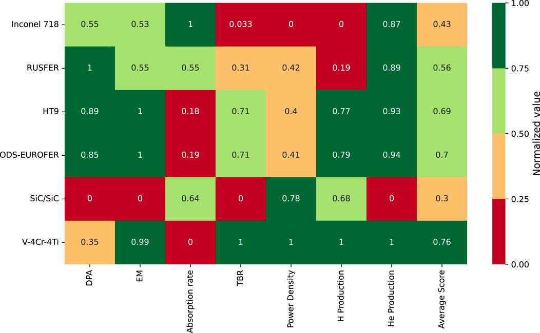 Overall, no single material is optimal across all criteria. The findings emphasize the need for application-specific trade-offs and the further qualification of low-activation materials under fusion-relevant conditions, with particular attention to long-term mechanical integrity, gas production, and manufacturability.