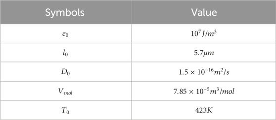 The developed mesoscale model for Ag dissolution is formulated in three dimensions; however, to reduce computational cost, simulations are conducted in a quasi-three-dimensional domain. Specifically, the simulation cell is thin along the y-direction and extended in the x- and z-directions. The physical dimensions of the simulation domain are