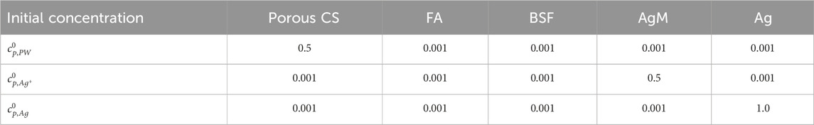 Ag dissolution simulations are conducted under batch experiment conditions. It is assumed that the PW within the porous CS matrix rapidly reaches a saturated concentration, denoted as