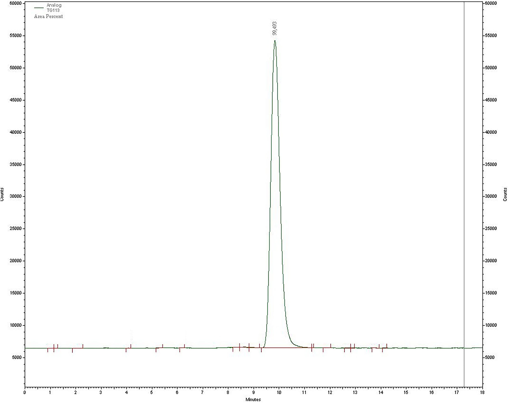 HPLC chromatogram after labeling of 13 with lutetium-177 (tR = of 9.8 min).