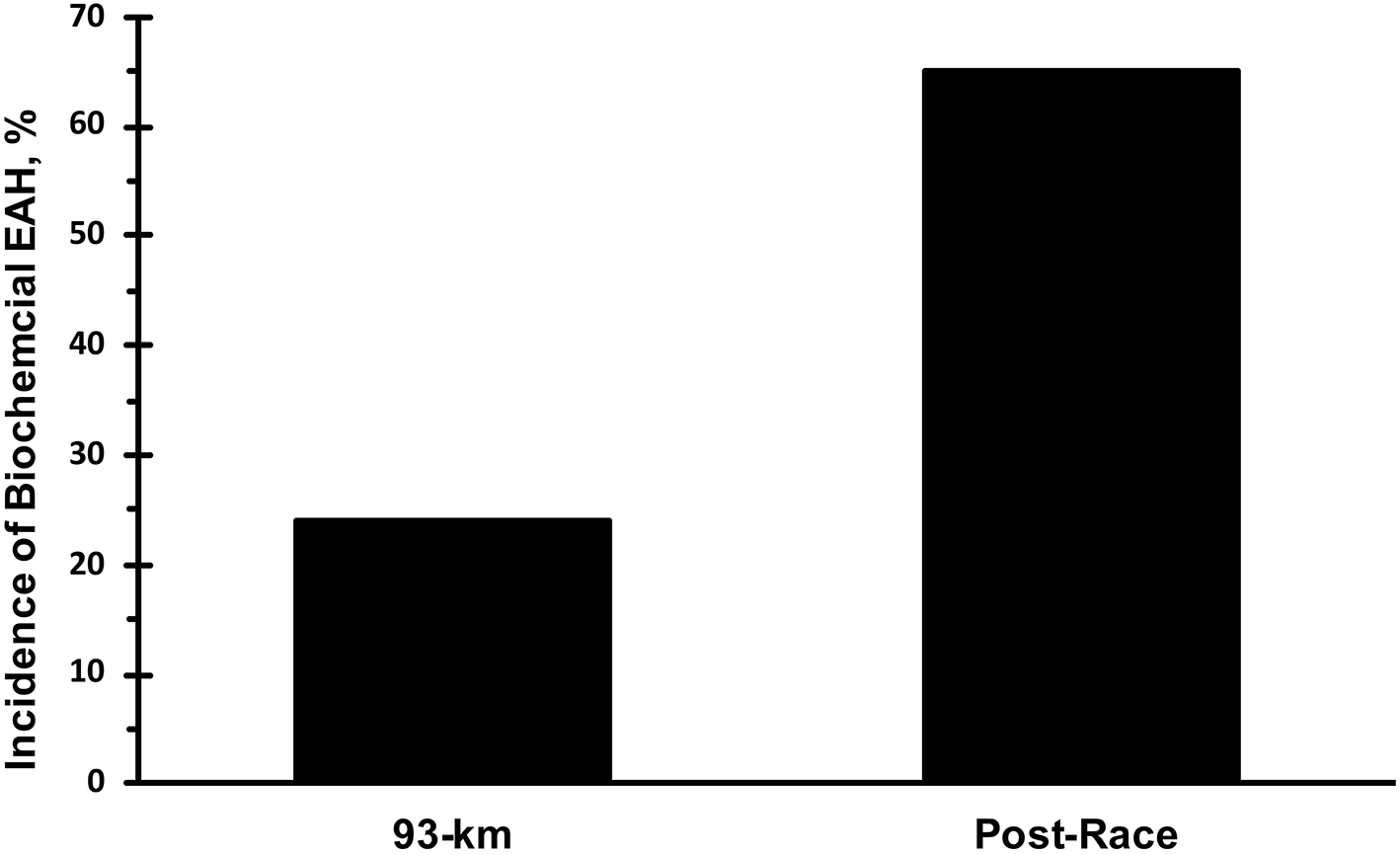 Figure 2. Incidence of biochemical exercise associated hyponatremia. Biochemical exercise associated hyponatremia defined as serum sodium <135 mmol·L−1.