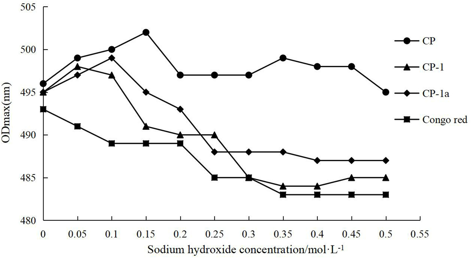 The variation of the maximum absorption wavelength of polysaccharides and Congo red complex were determined and the results are shown in Figure 7. The crude and purified polysaccharide samples all bound Congo red, indicating that the samples maintain regular helical conformations. The red shift distance of CP was significantly larger than that of CP-1 and CP-1a, indicating the helical degree of CP was more complex. This may reflect the partial destruction of the original helical structure after purification, leading to a reduction of red shift distance (50).