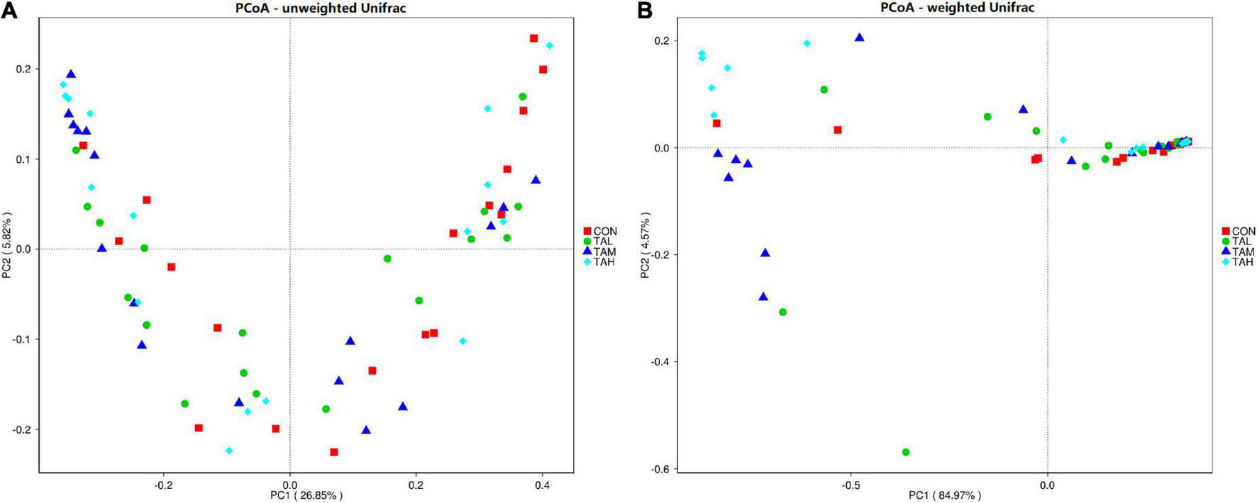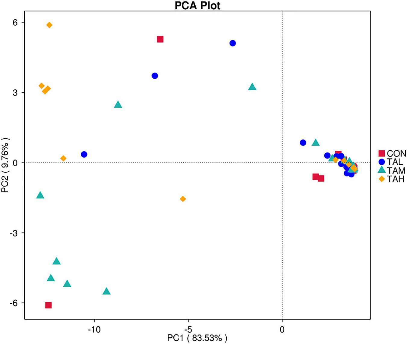 2CON, control group; TAL, low-dose tannic acid treatment, 0.3% DM; TAM, mid-dose tannic acid treatment, 0.9% DM; TAH, high-dose tannic acid treatment, 2.7% DM.