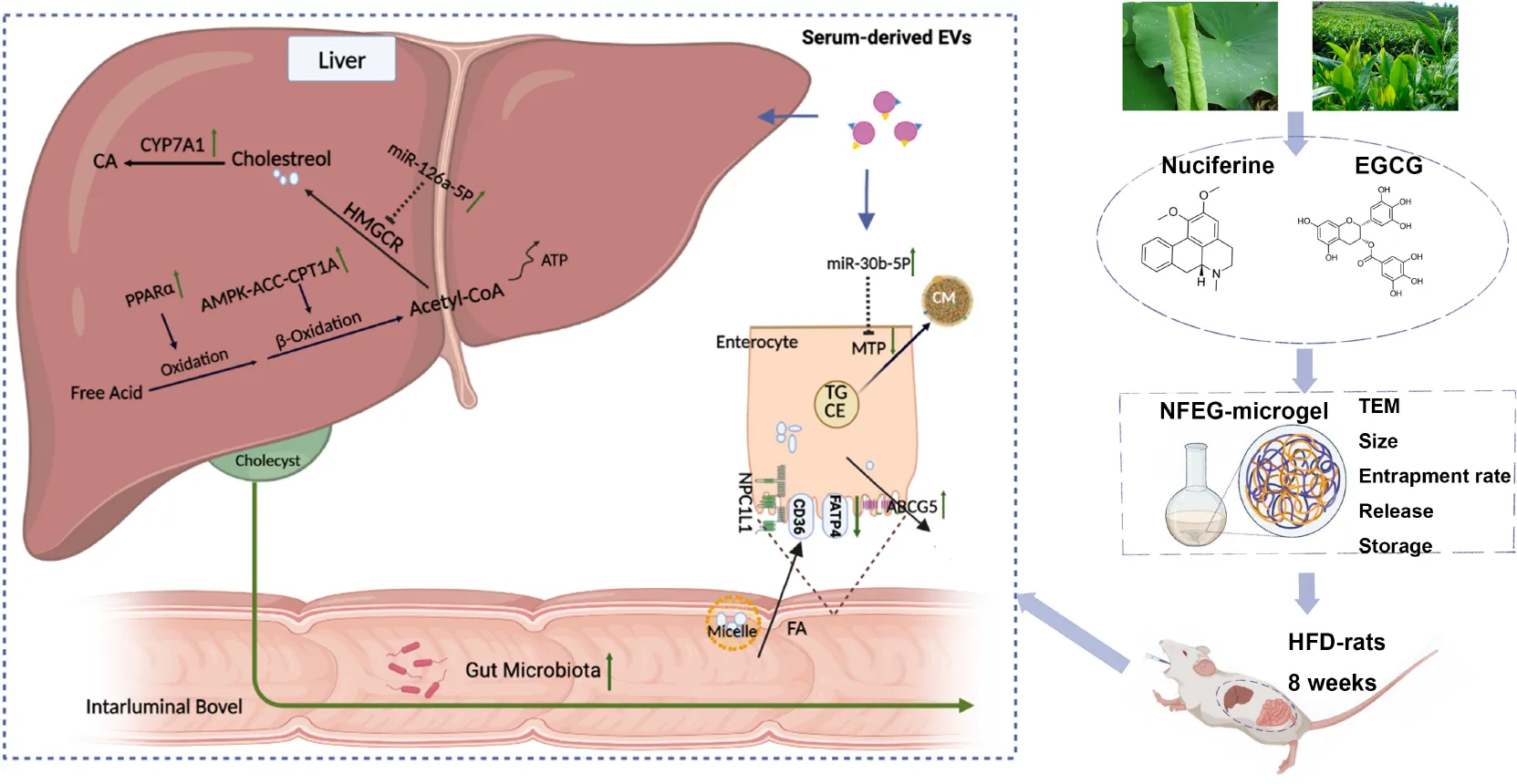 Keywords: nuciferine, epigallocatechin-3-gallate, microgel, miRNAs, lipid metabolism genes, gut microbiota