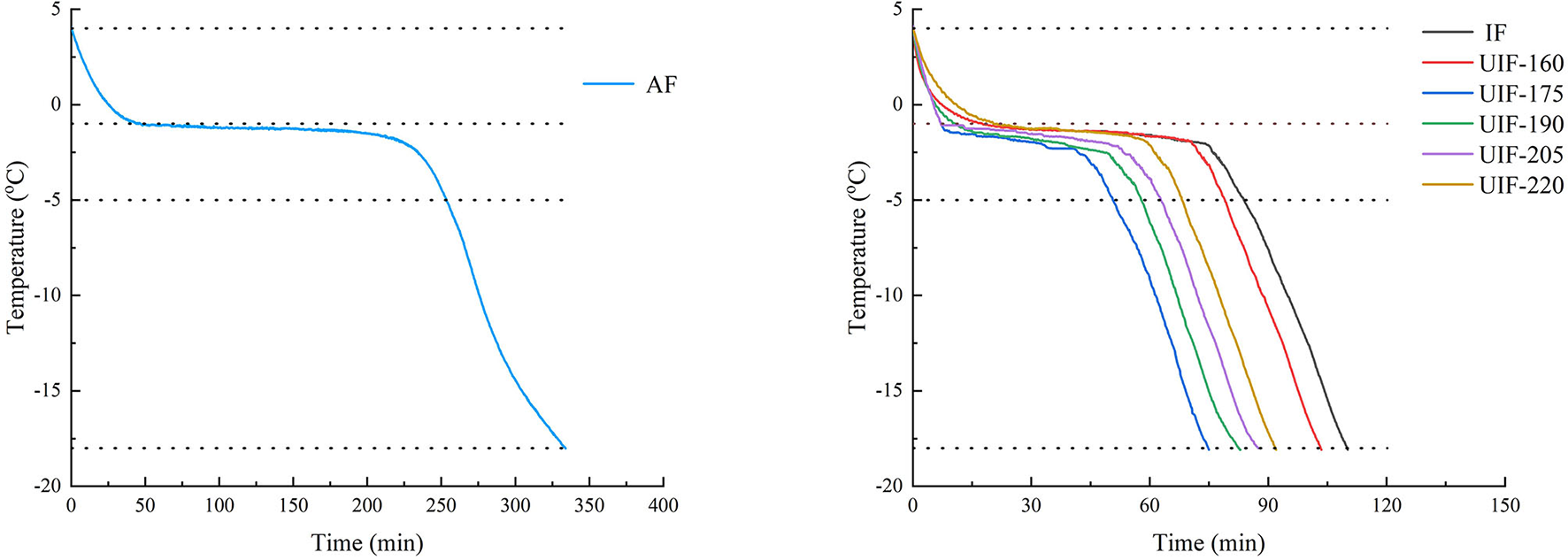 Freezing curves of large yellow croaker with different freezing treatments.