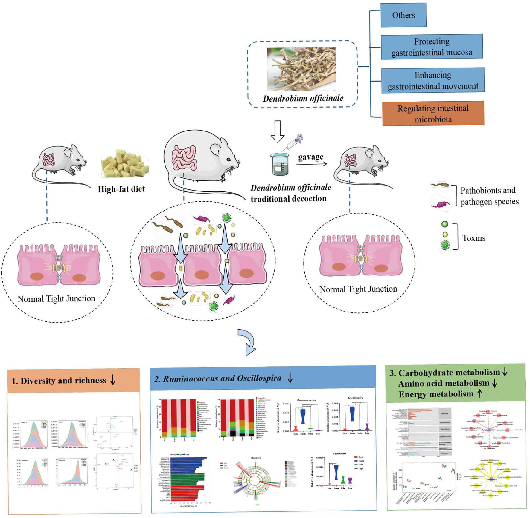 Li X, Deng N, Zheng T, Qiao B, Peng M, Xiao N and Tan Z (2022) Importance of Dendrobium officinale in improving the adverse effects of high-fat diet on mice associated with intestinal contents microbiota. Front. Nutr. 9:957334. doi: 10.3389/fnut.2022.957334