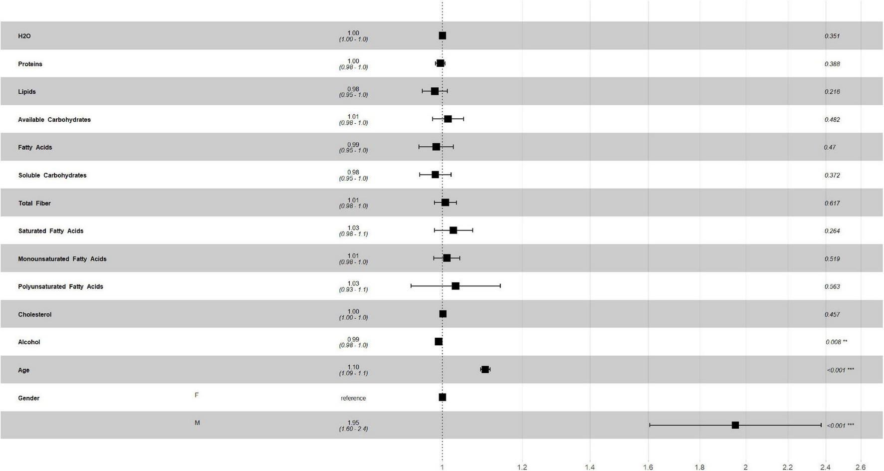| Polyunsaturated fatty acids (g) | 8.31 ± 3.21 |