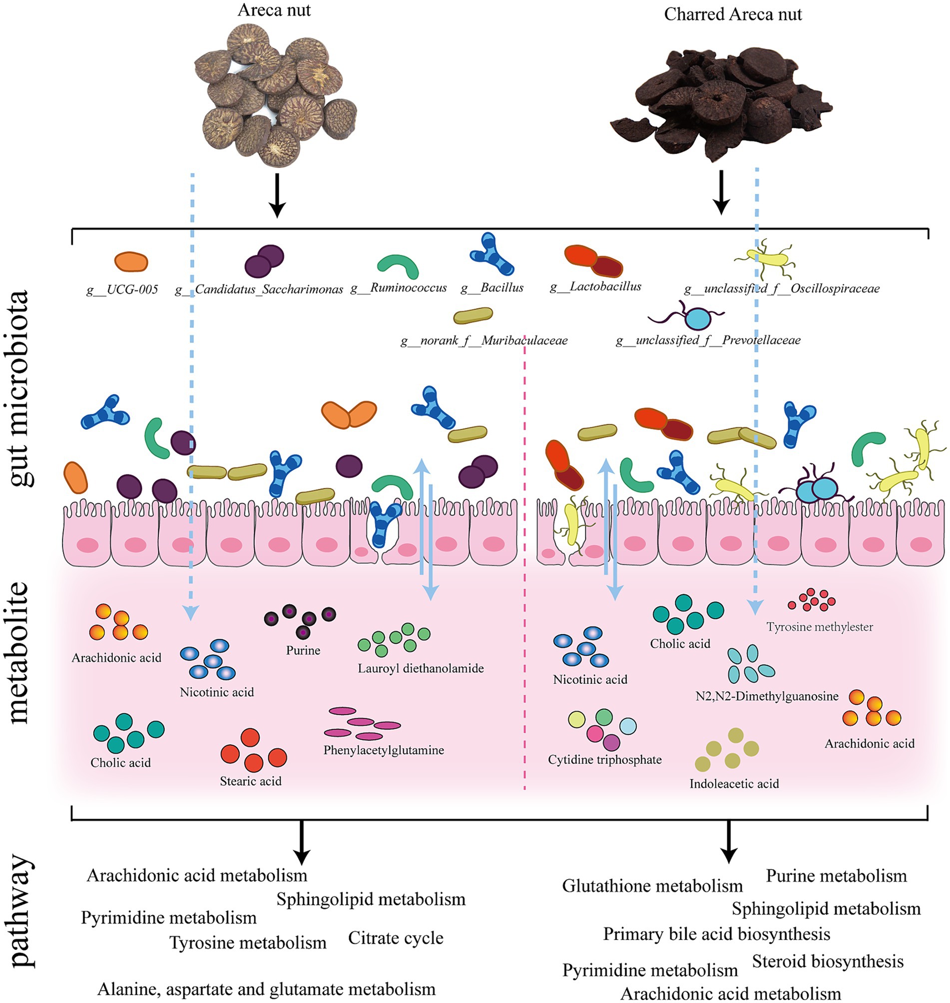 Keywords: areca nut, charred areca nut, constipation, gut microbiota, metabolomics