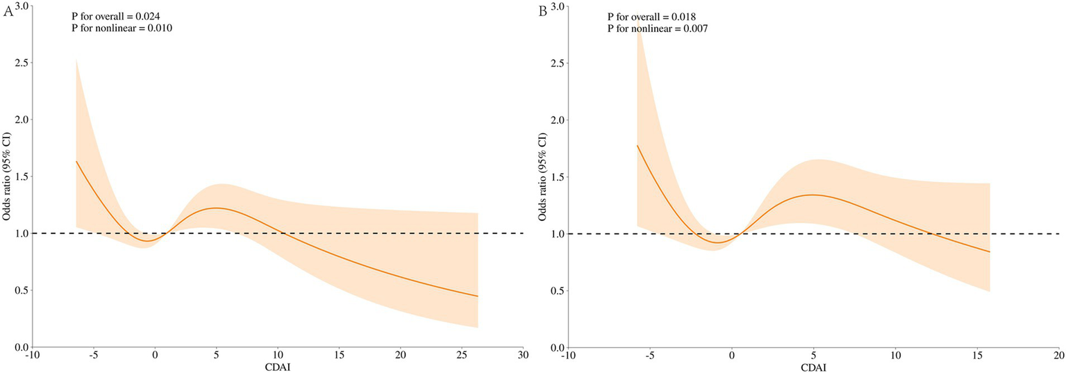 We then categorized the population according to the thresholds and then regressed the CDAI and its components on the UUI separately to explore whether certain elements had a greater effect. Then, using subgroup analysis, the stratified association between CDAI and UUI was examined. Additionally, interaction tests were performed to assess the way in which relationships between subgroups interacted.