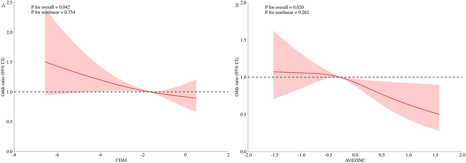 Diet as a part of behavioural therapy is now being considered a promising treatment for many diseases (12–15). The composite dietary antioxidant index (CDAI) is based on a range of dietary vitamins and minerals with antioxidant properties, including carotenoids, zinc, selenium, and vitamins C, E, and A. This summary score is used to assess a person’s dietary total antioxidant capacity (TAC) (16, 17). Recent research indicates a link between CDAI and inflammatory biomarkers (18). It is widely recognized by scholars that considering a composite diet is more representative of actual daily nutrient intake in humans, rather than focusing on individual nutrients (19). Therefore, this study explores the relationship between the combination of the six trace nutrients mentioned above and UUI.