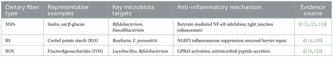 It is necessary to emphasize the synergistic role of both “quality” and “quantity” when examining protein's regulation of depression: 1. in terms of quality, the antidepressant effect of high-biological-value proteins (containing complete essential amino acids, such as dairy and fish proteins) is significantly superior to that of low-biological-value proteins (such as single-grain proteins). A cohort study of American adults (27) showed that individuals who consumed high-biological-value proteins (accounting for more than 50% of total protein intake) daily had a 28% lower risk of depression (OR = 0.72, 95% CI: 0.58–0.89), while low-biological-value proteins did not provide such a protective effect. This is directly related to the higher content of tryptophan and tyrosine in high-biological-value proteins, which support neurotransmitter synthesis (31); 2. in terms of quantity, there is a “threshold effect”: a study of Indian middle school students (28) indicated that when daily protein intake was ≥1.2 g/kg body weight, intestinal tryptophan supply was stable, 5-HT (5-hydroxytryptamine) synthesis was sufficient, and depression scores decreased significantly (mean difference = −1.8 points, P < 0.01); intake below this threshold increased the risk of depression, while excessive intake (≥2.0 g/kg body weight) did not further enhance the antidepressant effect. Instead, the increased metabolic burden of protein led to a higher abundance of intestinal Bacteroides (23), which may induce microbiota dysbiosis. Additionally, tryptophan supplementation (500 mg/day) can temporarily improve mood in patients with mild depression (reducing BDI-II scores by 2.5 points), but high doses (≥1,000 mg/day) may induce serotonin syndrome due to excessive activation of 5-HT (31); tyrosine supplementation (1,000 mg/day) is effective for depressed patients with fatigue symptoms (increasing energy scores by 15%), which is related to tyrosine acting as a dopamine precursor to improve motivation (32); in contrast, glutamine supplementation (2,000 mg/day) showed no antidepressant effect due to its low blood-brain barrier penetration rate (< 10%) (33). These results suggest that single amino acids need to be applied precisely to specific depression subtypes (such as fatigue-type or low-5-HT-type depression) rather than being used as a broad-spectrum intervention.