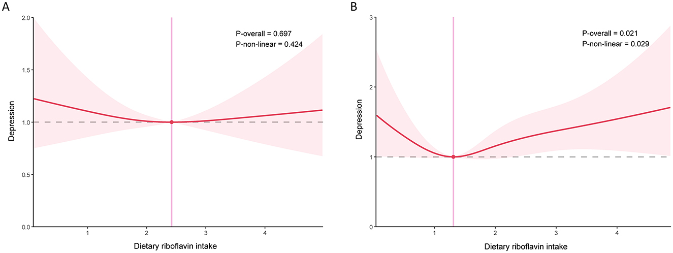 Figure 3. Association between dietary riboflavin intake and depression stratified by sex (A) men; (B) women.