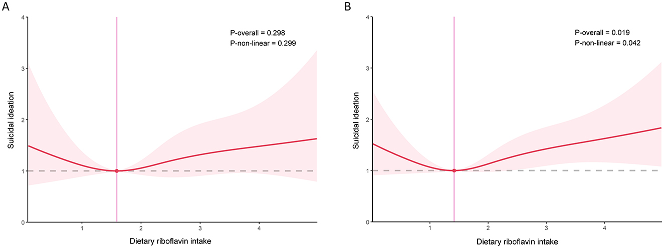 Figure 4. Association between dietary riboflavin intake and suicidal ideation stratified by sex (A) men; (B) women.