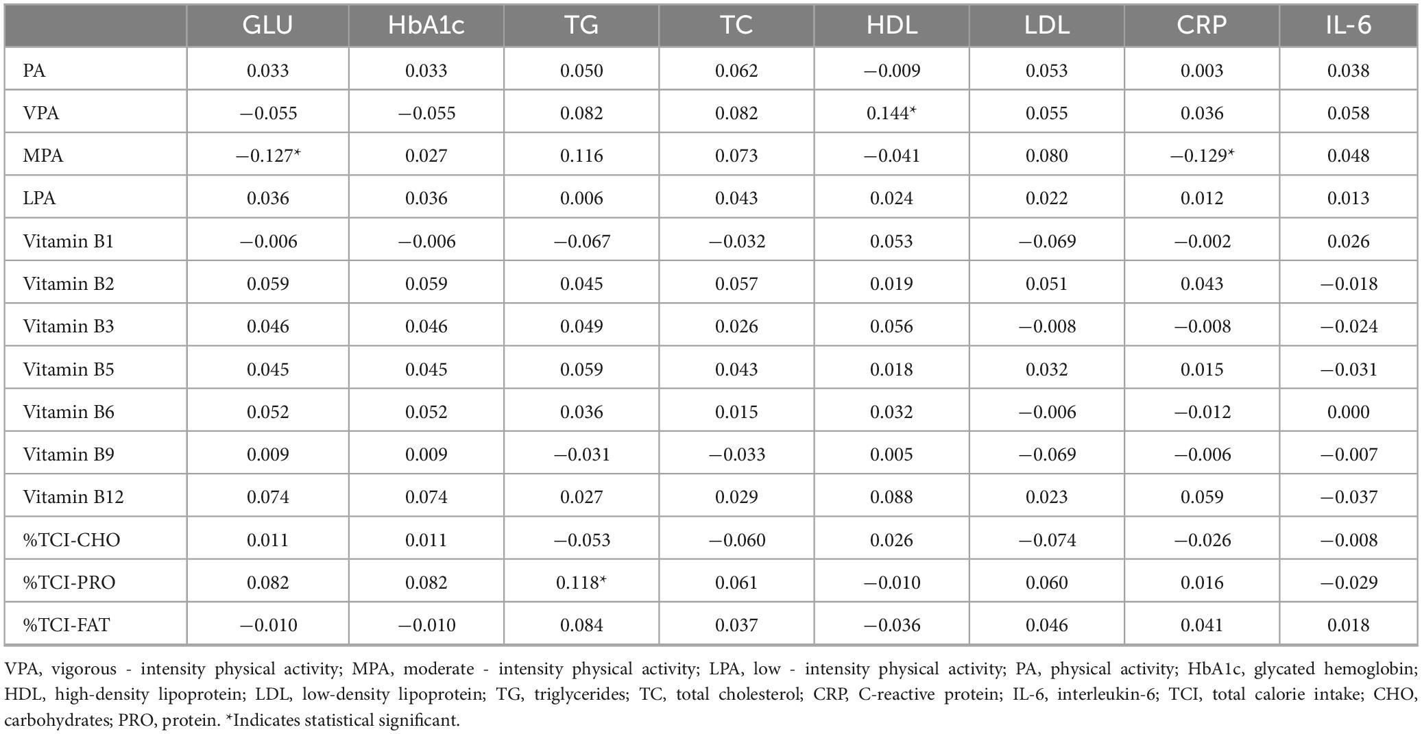 4.1.1 Correlation analysis of physical activity, nutrient intake and serum biomarkers