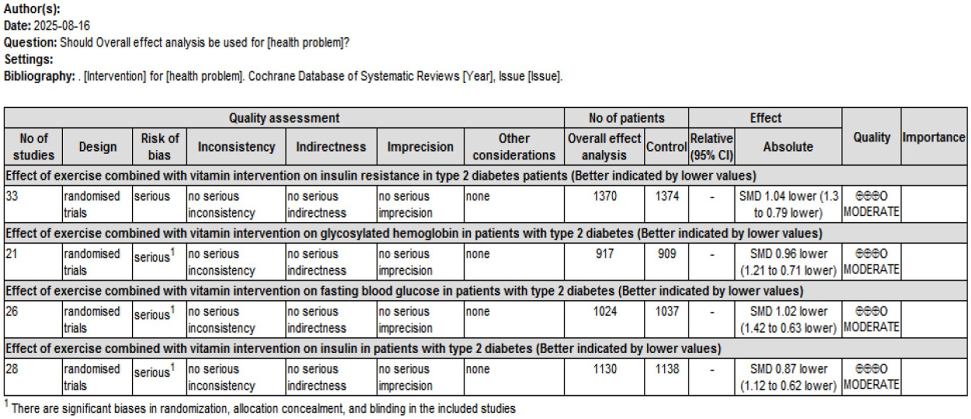 Conclusion: Vitamin supplementation at 4100–7500 IU/day combined with moderate-intensity exercise (approximately 4 METs) performed three times per week with each session lasting 45–60 min, yielded the most favorable improvements in insulin resistance and related metabolic outcomes in T2D patients.