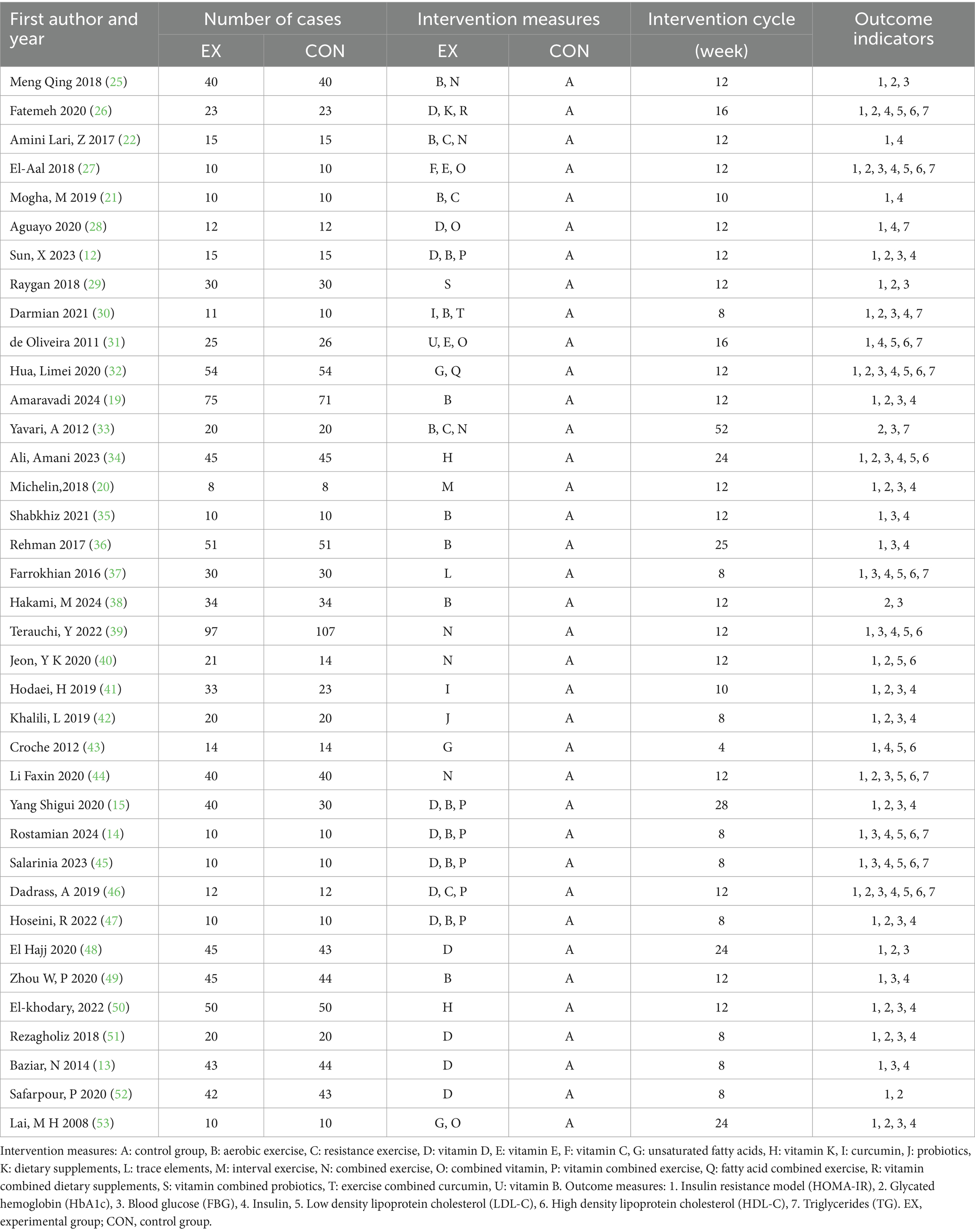 Citation: Deng F, Ji Y, Kong H, Fu Y, Zhang H and Zhang J (2025) Network meta-analysis of the effects of combined exercise and vitamin intervention on insulin resistance and related indicators in patients with type 2 diabetes. Front. Nutr. 12:1608634. doi: 10.3389/fnut.2025.1608634