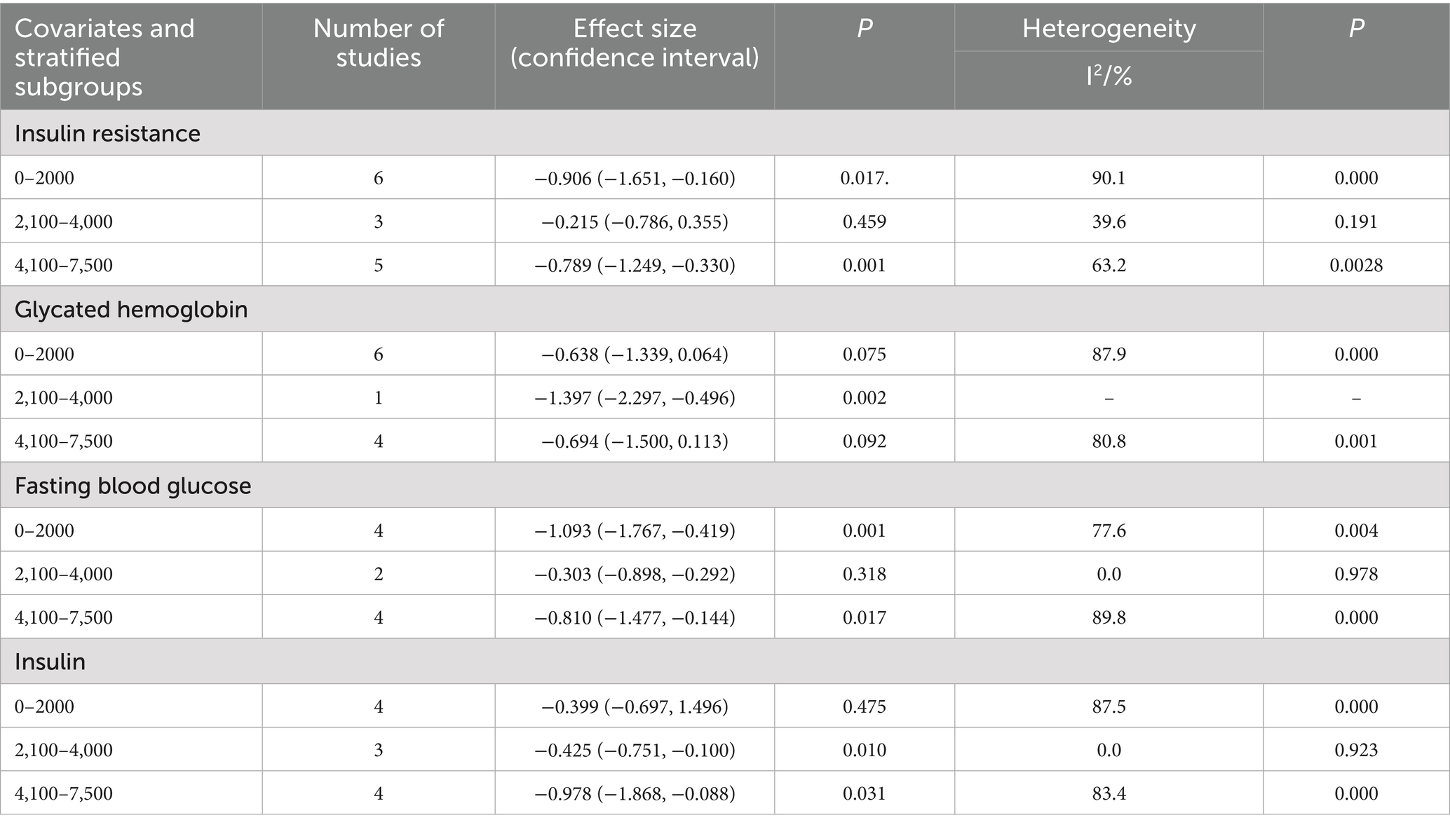 Table 2. Subgroup analysis of exercise combined with vitamin intervention on insulin resistance and corresponding indicators.