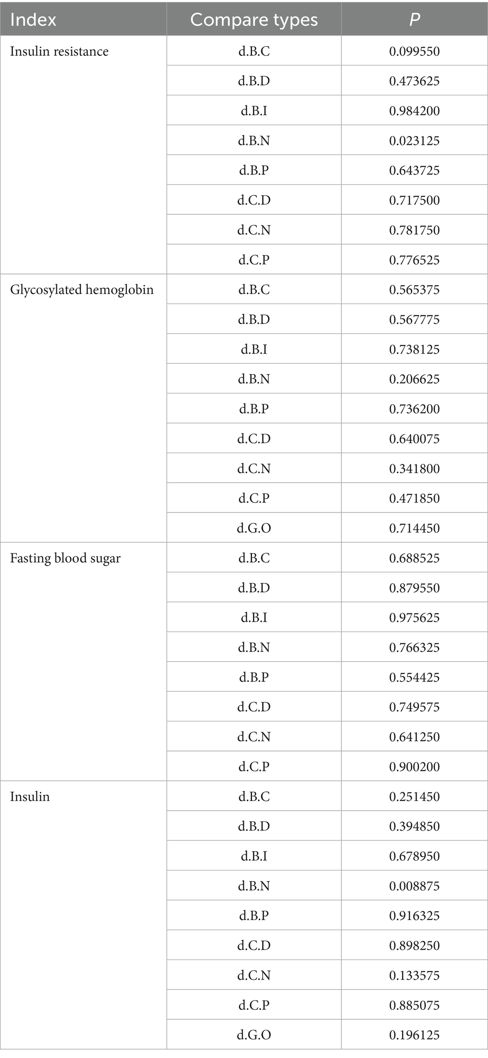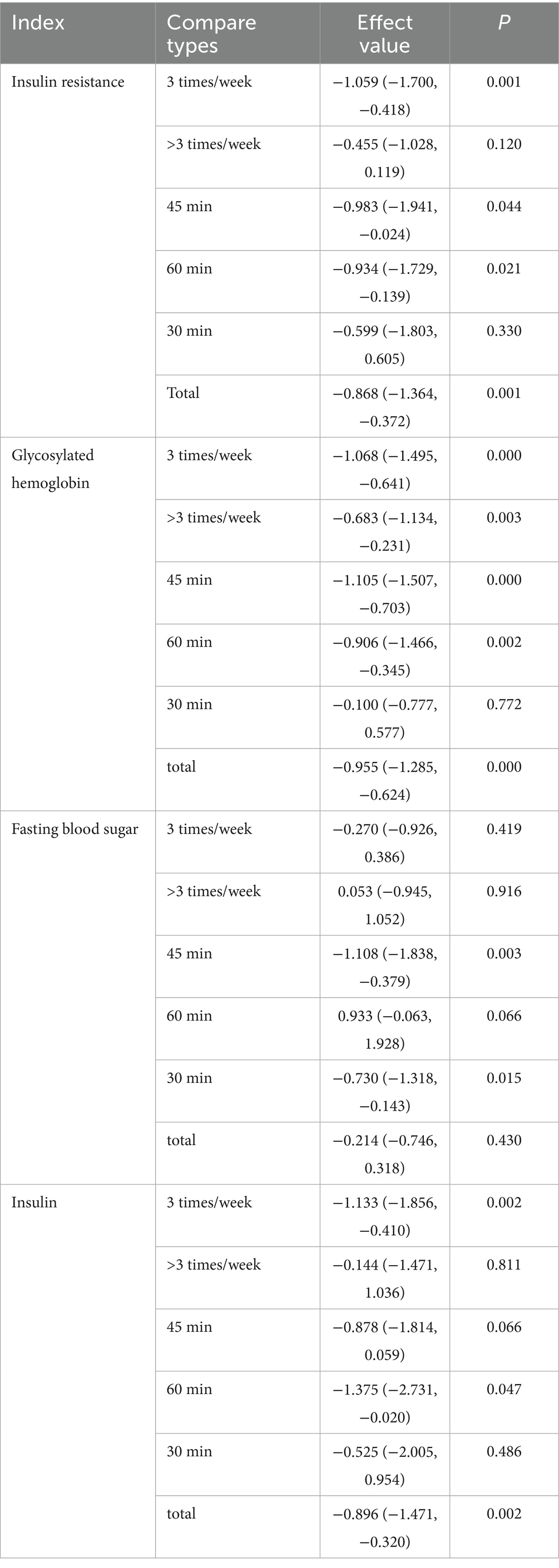 Table 4. Dose response of exercise intensity to insulin resistance and corresponding indicators.
