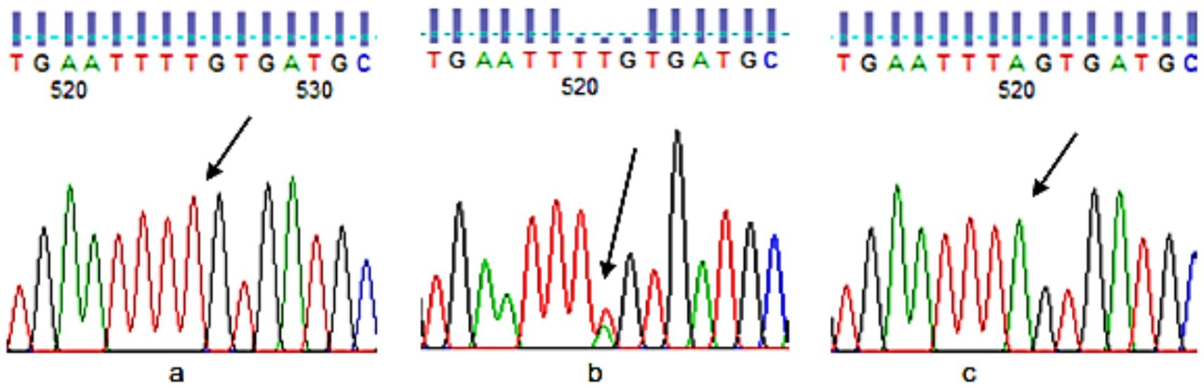 Genotyping was done for 146 overweight and obese individuals for FTO rs9939609 to attain the desired number of genotypes (TT, AA, and AT). The percentages of homozygous TT, heterozygous AT, and homozygous AA were 42.5, 37.7, and 19.9%, respectively.