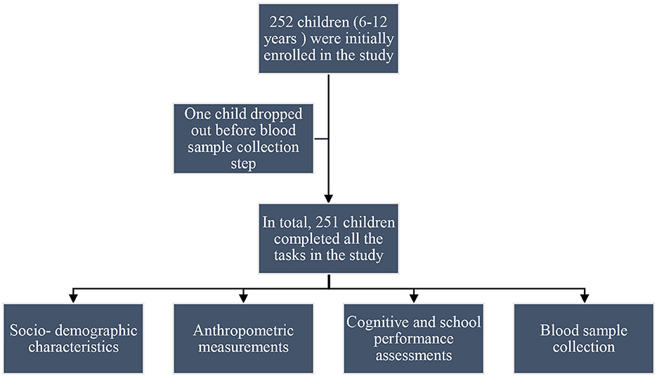 Methods: A sample of 252 schoolchildren (6–12 years) was recruited. Nutrient biomarkers were measured in blood samples, cognition (fluid intelligence) was assessed using the Raven's Colored Progressive Matrices (RCPM), and school performance was quantified based on academic results in mathematics and literature.