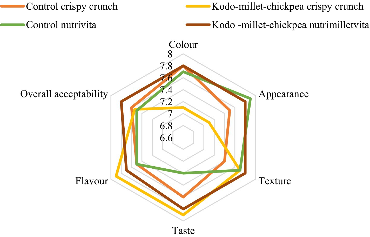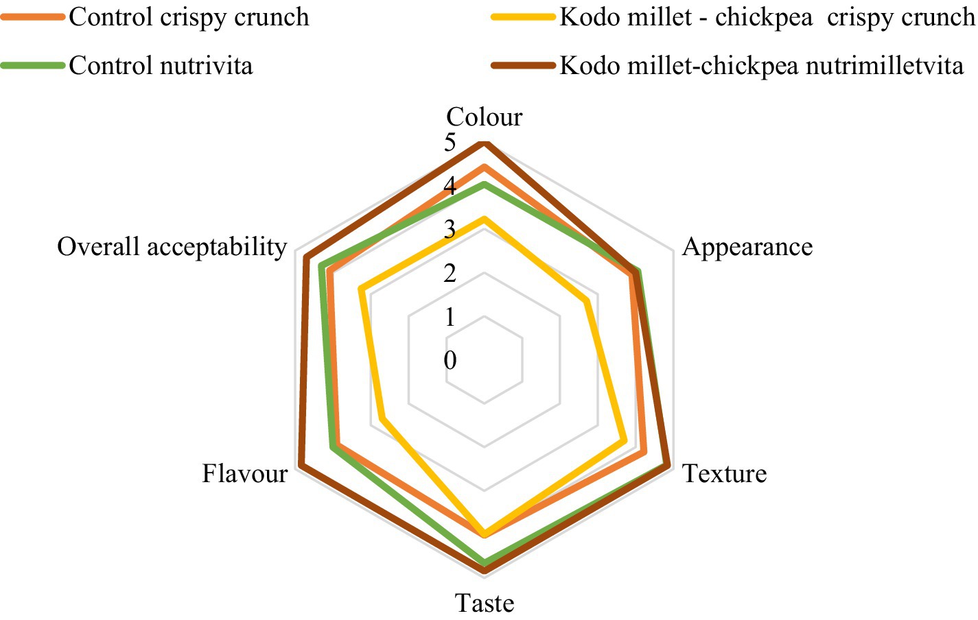 Figure 1. Organoleptic evaluation of Kodo millet–chickpea products.
