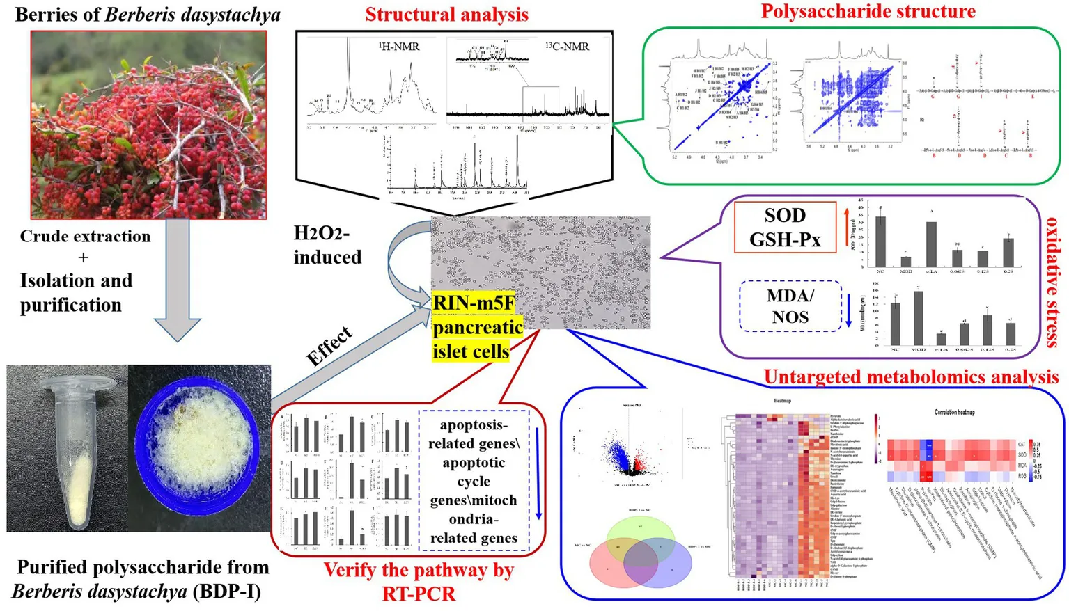 Berberis dasystachya M., metabolomics, oxidative stress, pancreatic β-cells, polysaccharides, structural characterization