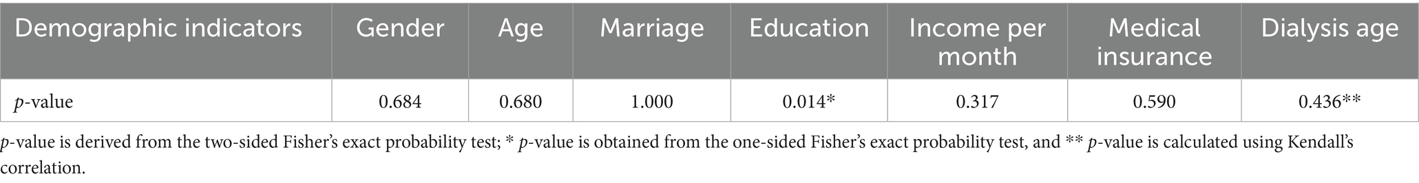 Given the multifaceted nature of diseases and health challenges faced by patients with MHD, the effective application of health management strategies has become a critical focus. Contemporary medical practice in the 21st century is guided by three core principles: patient-centered care, active involvement of patients and their families, and shared decision-making (60). The emphasis in health management has shifted from medical specialist guidance to active patient engagement. In the context of chronic dialysis treatment, patient-reported outcomes should be prioritized over evidence-based clinical indicators (61). Extensive research by prominent scholars and organizations has contributed to advancing self-management among dialysis patients (62–64), yielding significant findings. However, not all studies have yielded favorable outcomes (65). Non-disease-related factors, such as public awareness of dialysis (66), patient-incurred expenses (67), and insurance and reimbursement policies (67), also influence the implementation of health management strategies. For instance, this study found that patients with higher educational attainment exhibited significantly superior compliance (p = 0.014).