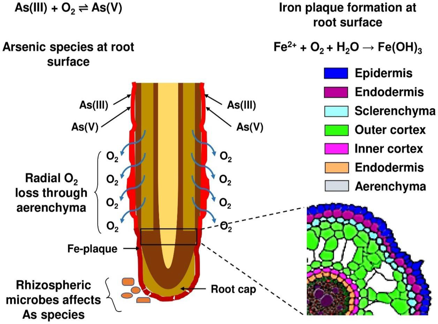 The influence of Fe plaque formation on rice root surface on As availability.