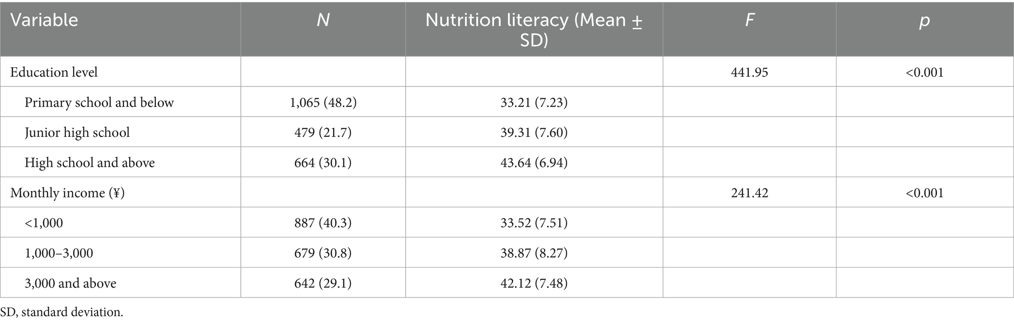 Keywords: dietary diversity, nutrition literacy, socioeconomic status, adults, China