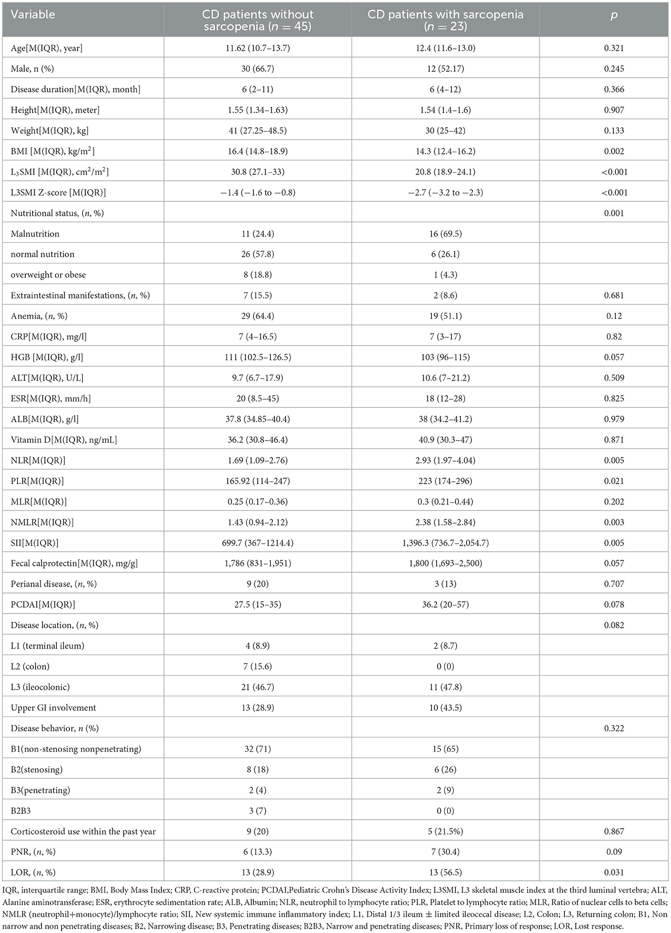 3.2 Comparison between CD patients with sarcopenia and those without sarcopenia