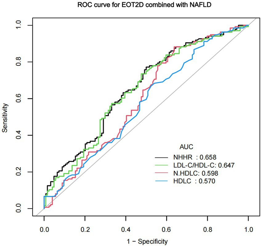 Conclusion: Our study suggests that NHHR is a risk factor for EOT2D and EOT2D combined with NAFLD, serving as a reference indicator for screening this high-risk population.