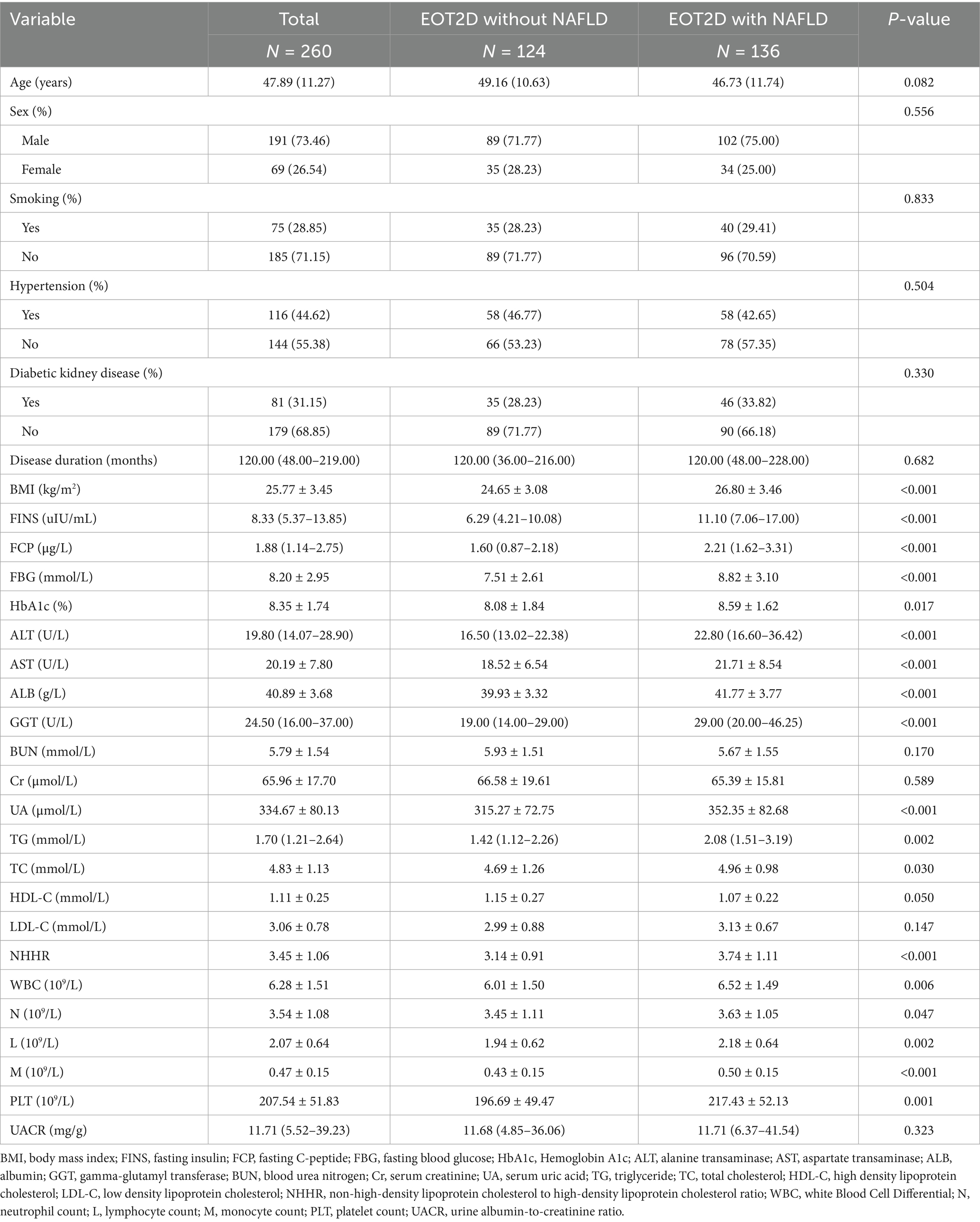 Table 3. Baseline characteristics of early-onset T2DM patients stratified by NAFLD status.