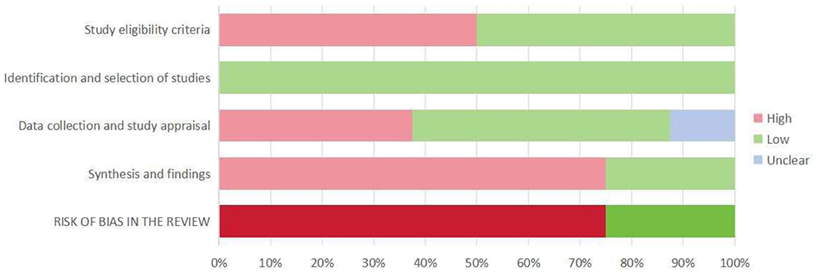 Figure 2. Summary of ROBIS assessment. Percentages derived from the number of included systematic reviews (100% = 8 included systematic reviews).