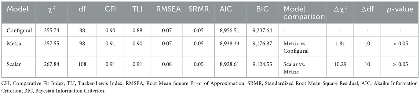 3.7 Multi-group confirmatory factor analysis testing gender invariance