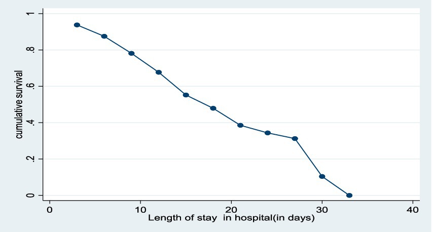 Figure 1. Length of hospitalization plotted against the cumulative survival of the children in the study.