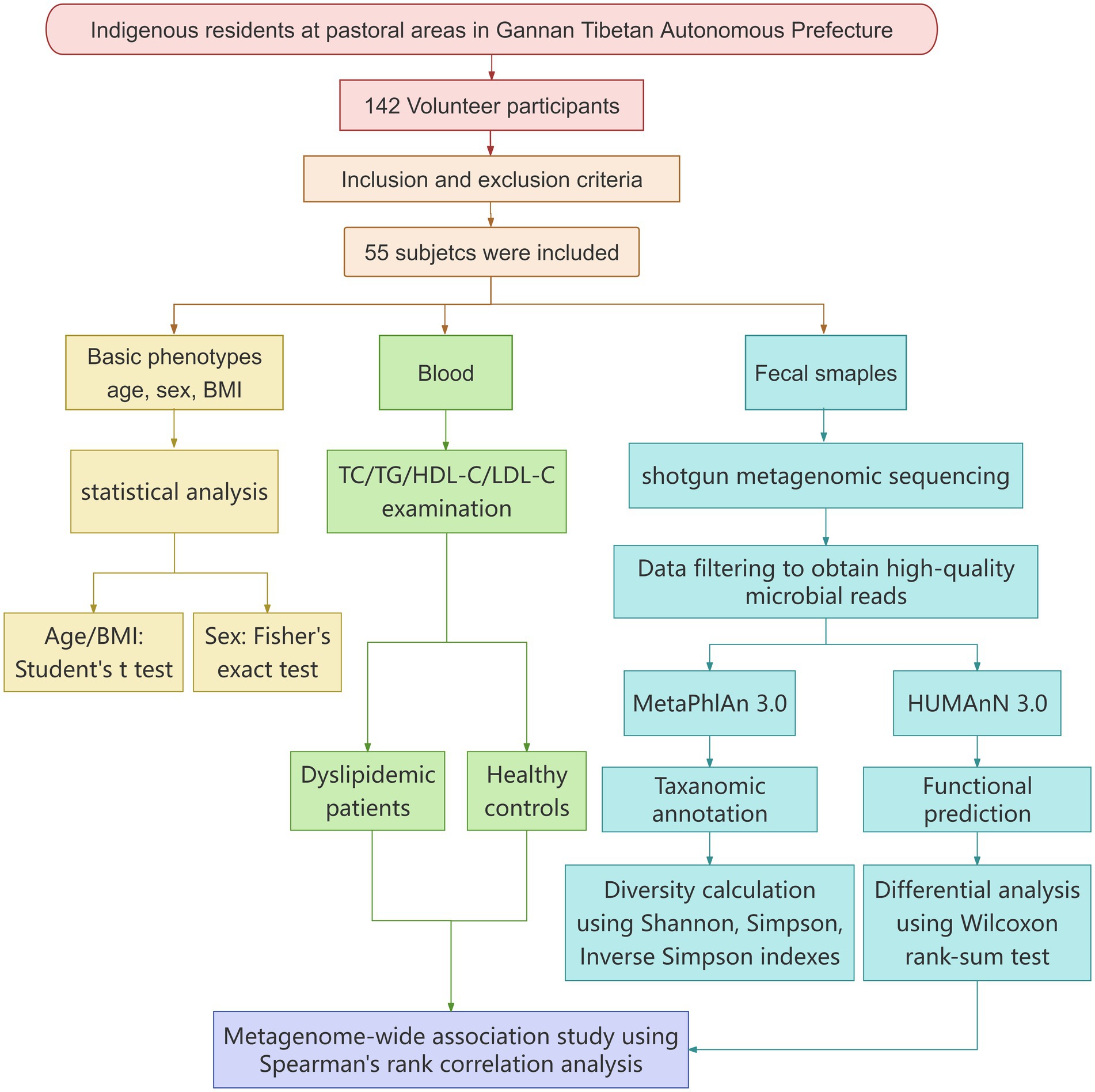 Keywords: dyslipidemia, Tibetan pastoral area, shotgun metagenomic sequencing, gut microbiota, microbial metabolic pathway prediction, metagenome-wide association study