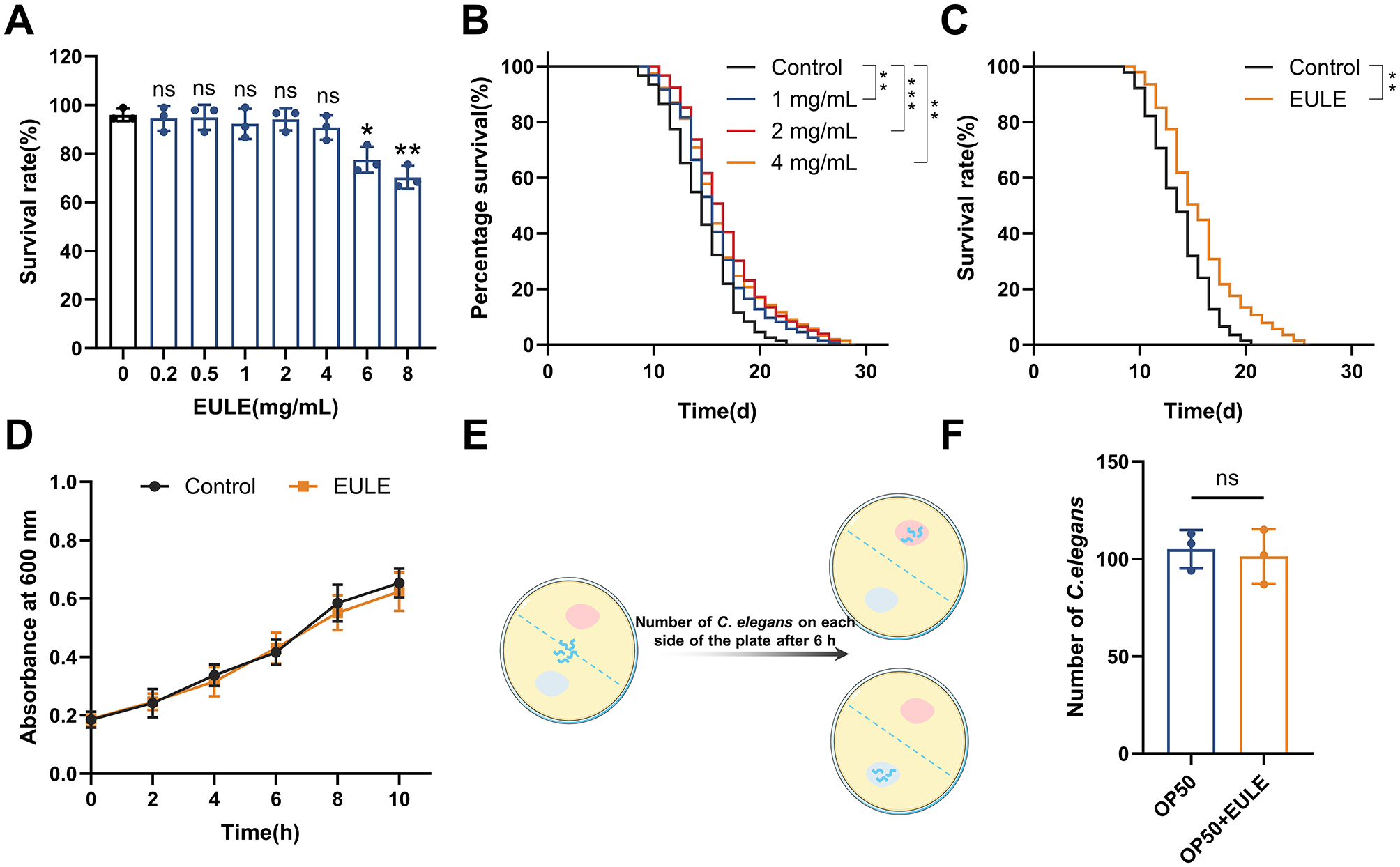 2.5 Effects of EULE on the proliferation of E. coli OP50 and feeding behavior of C. elegans