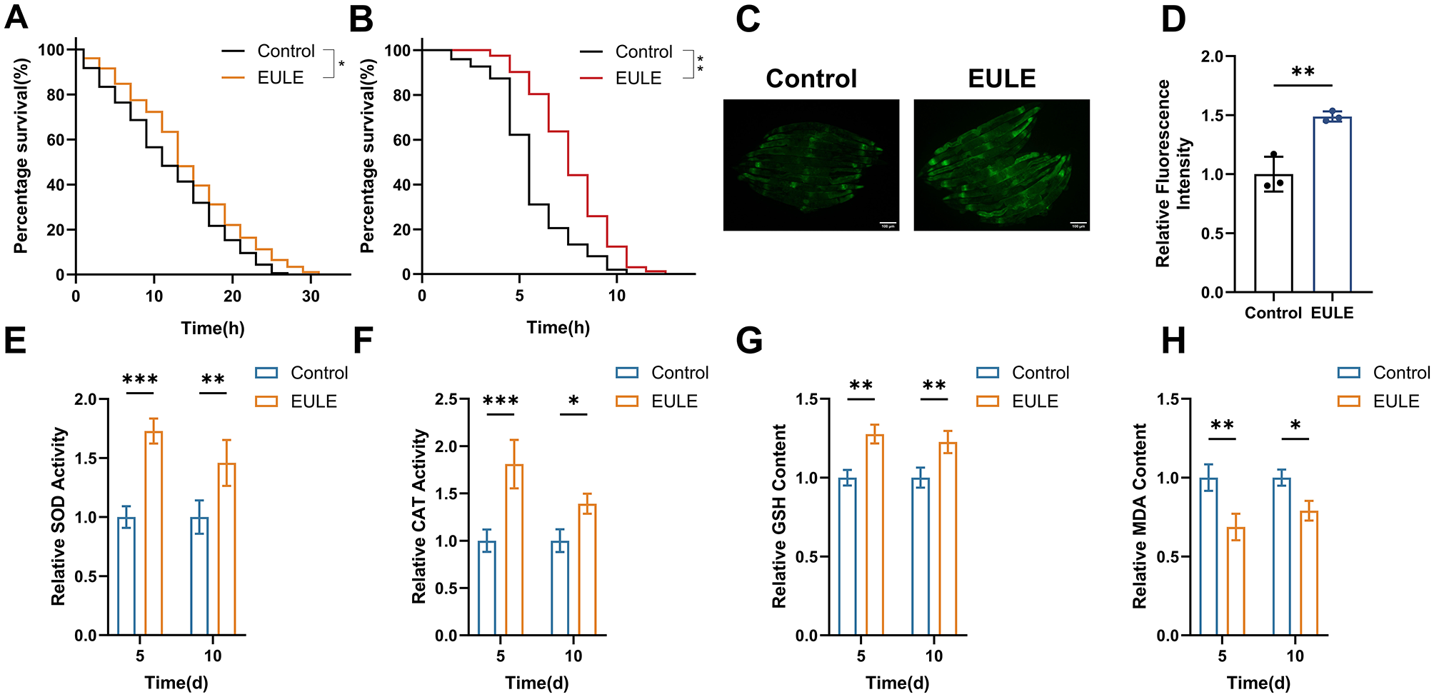 3.7 EULE improves stress resistance and enhances the endogenous antioxidant system in C. elegans