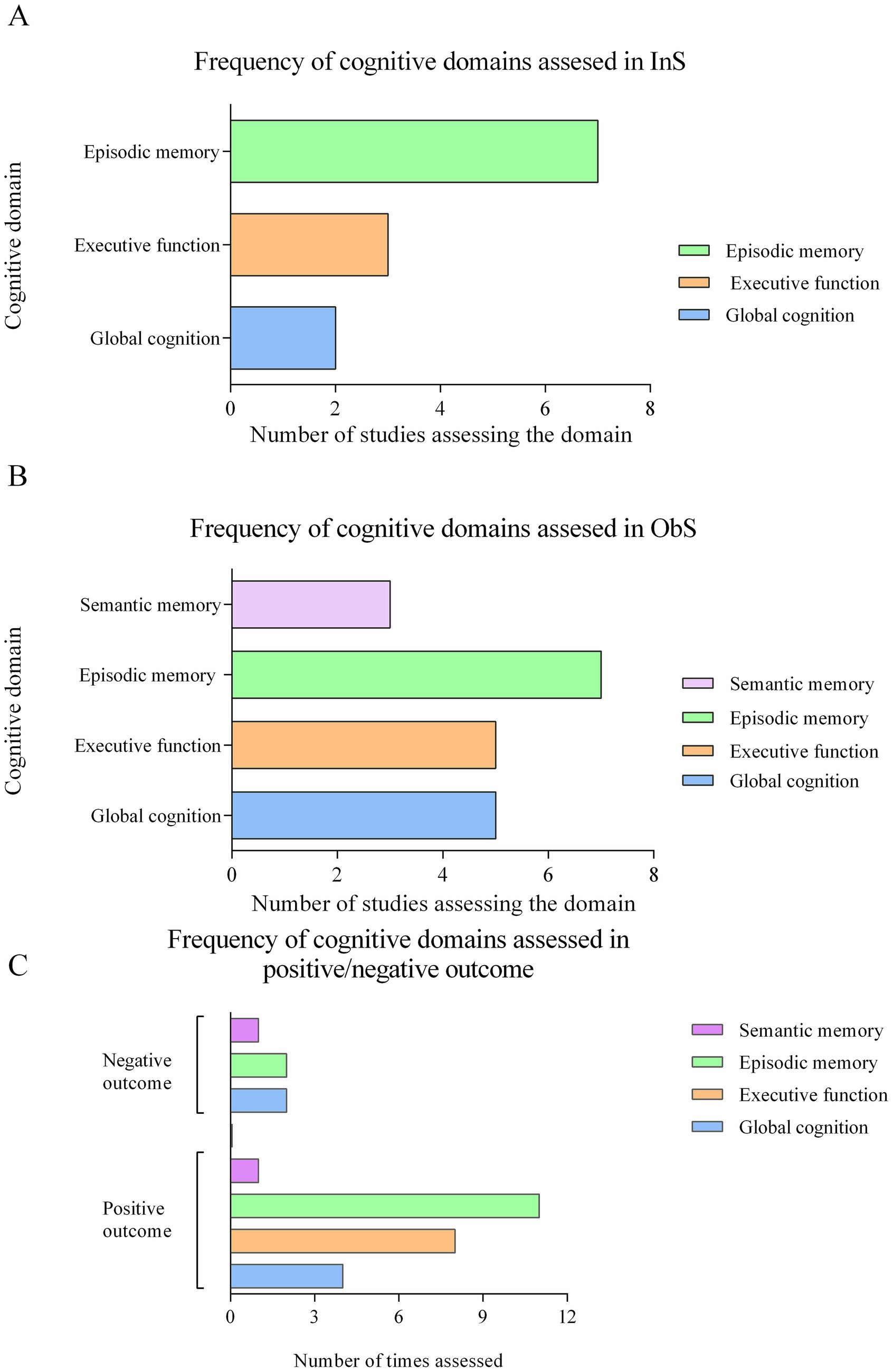 Health-related confounders in InSs were inconsistently addressed. Some studies considered supplement or nootropic intake, diabetes, FF intake, exercise, alcohol and sleep (41, 43, 45, 46). Benton et al. (47) reported on mental and physical health status at baseline. Only two studies provided Body Mass Index (BMI) data (43, 46), and few mentioned gastrointestinal problems (43, 48). Pregnancy and obesity were not addressed. InSs involved mostly cognitively healthy participants, with studies of Handajani et al. (45) and Hwang et al. (46), including only participants with MCI. Baseline cognition was assessed in all studies using validated cognitive tests.