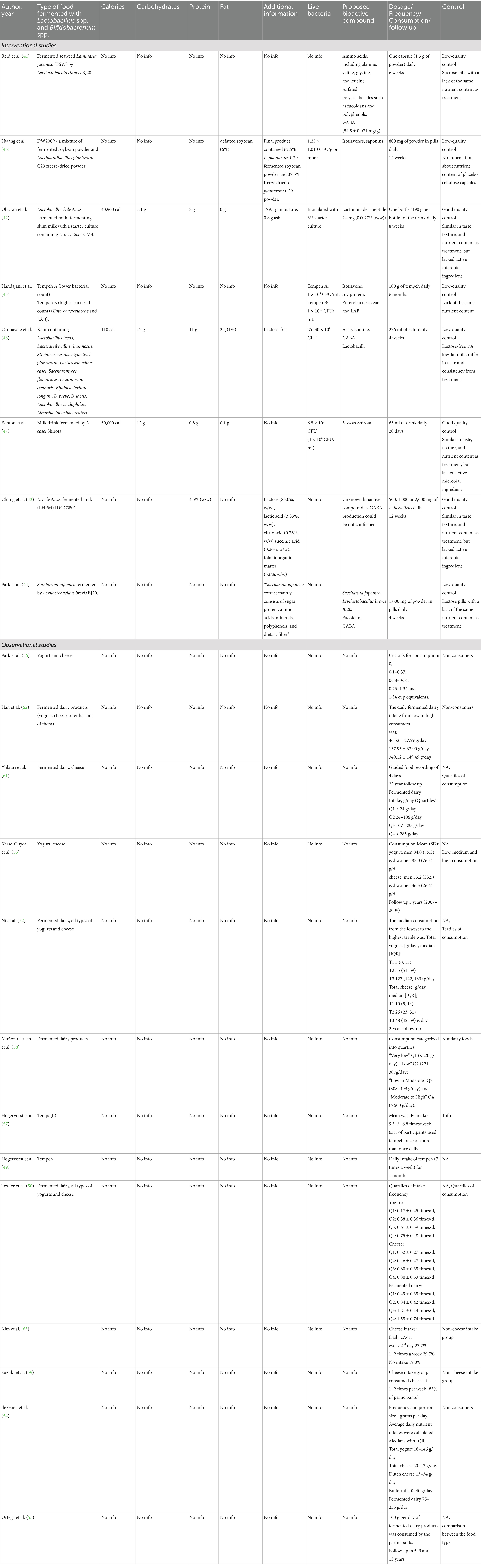 3. Low-quality control was a non-fermented product that did not match the intervention in one or more of the listed characteristics. ObSs were included if all PIO criteria were met, regardless of control quality. In these cases, controls were typically defined as no (placebo) or lower intake of the FF in question or consumption of a non-fermented equivalent.