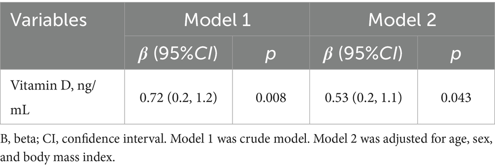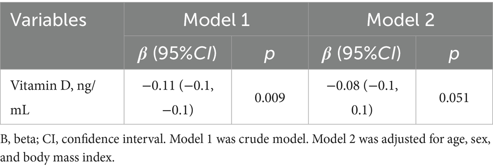 Table 5. Linear regression analysis of the association between 25(OH)D levels and mean platelet volume.
