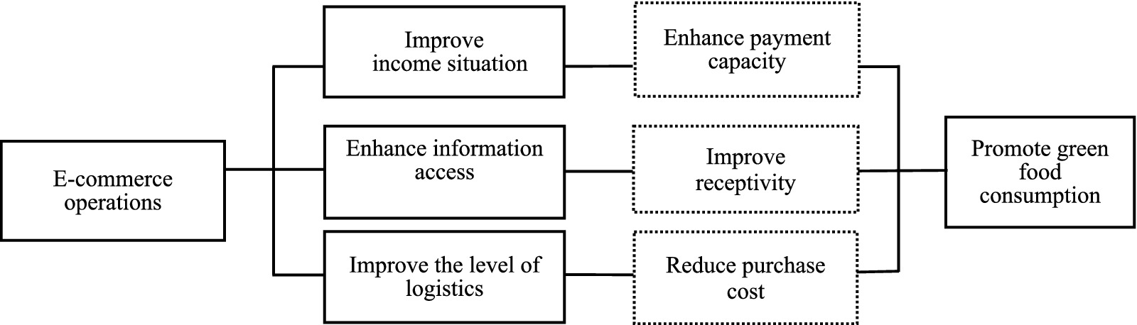 Figure 1. The influence mechanism of e-commerce operations on green food consumption of rural residents.