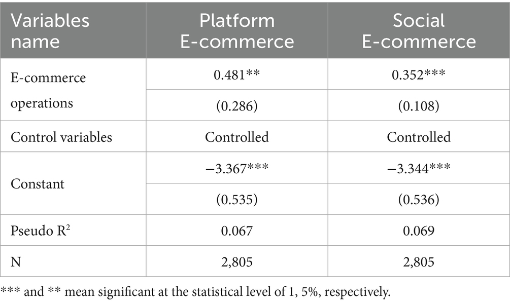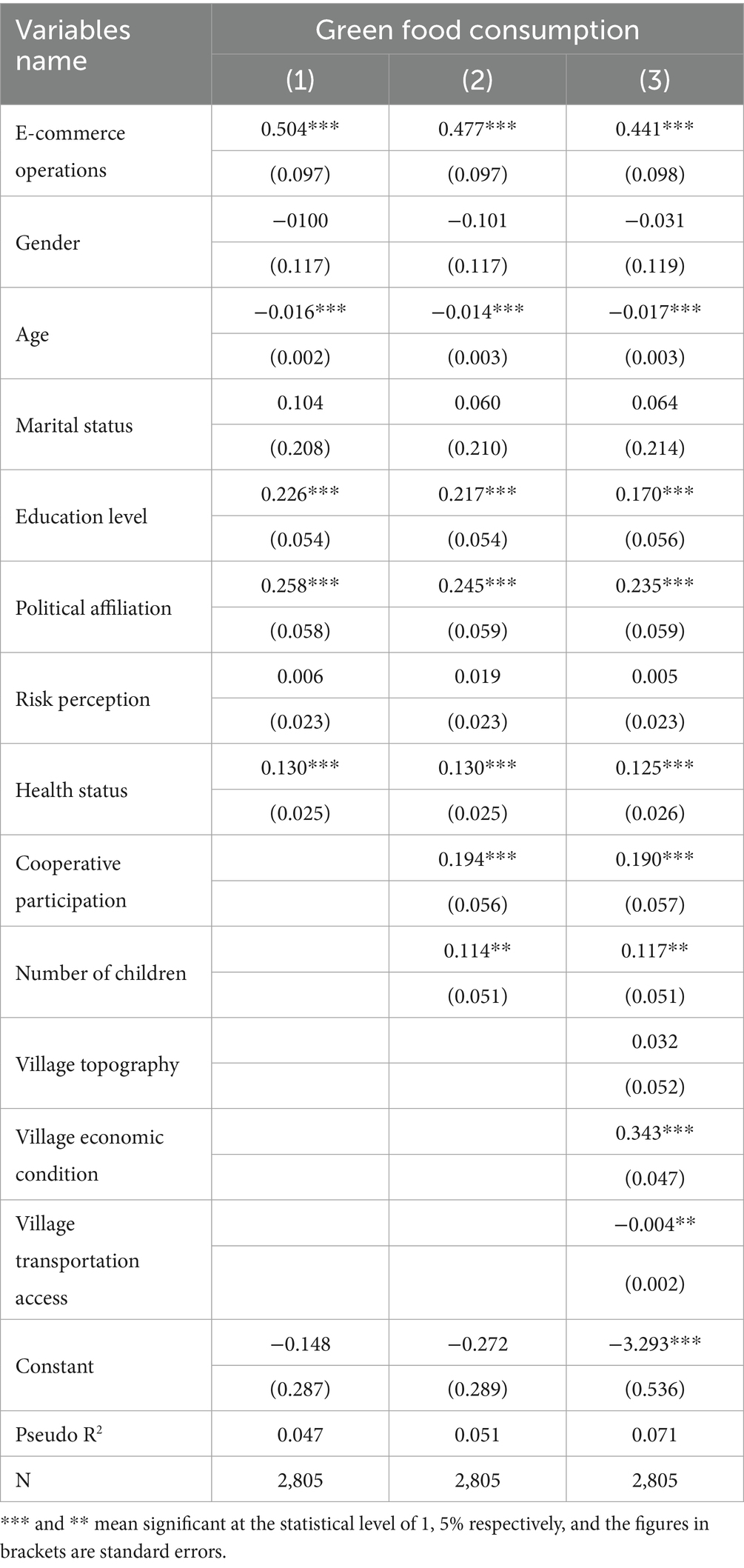 Given that the dependent variable is binary, this study employs a binary Probit model to estimate the effect of e-commerce operations on green food consumption: