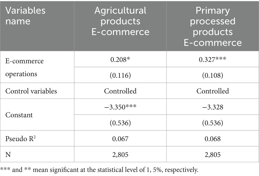 Considering that the green food consumption of rural residents is a binary variable, this paper adopts the Logit model instead of the Probit model for re-estimation. The results are shown in column (3) of Table 3, where e-commerce operations are still significantly positive at the 1% statistical level, indicating the robustness of the above regression results.