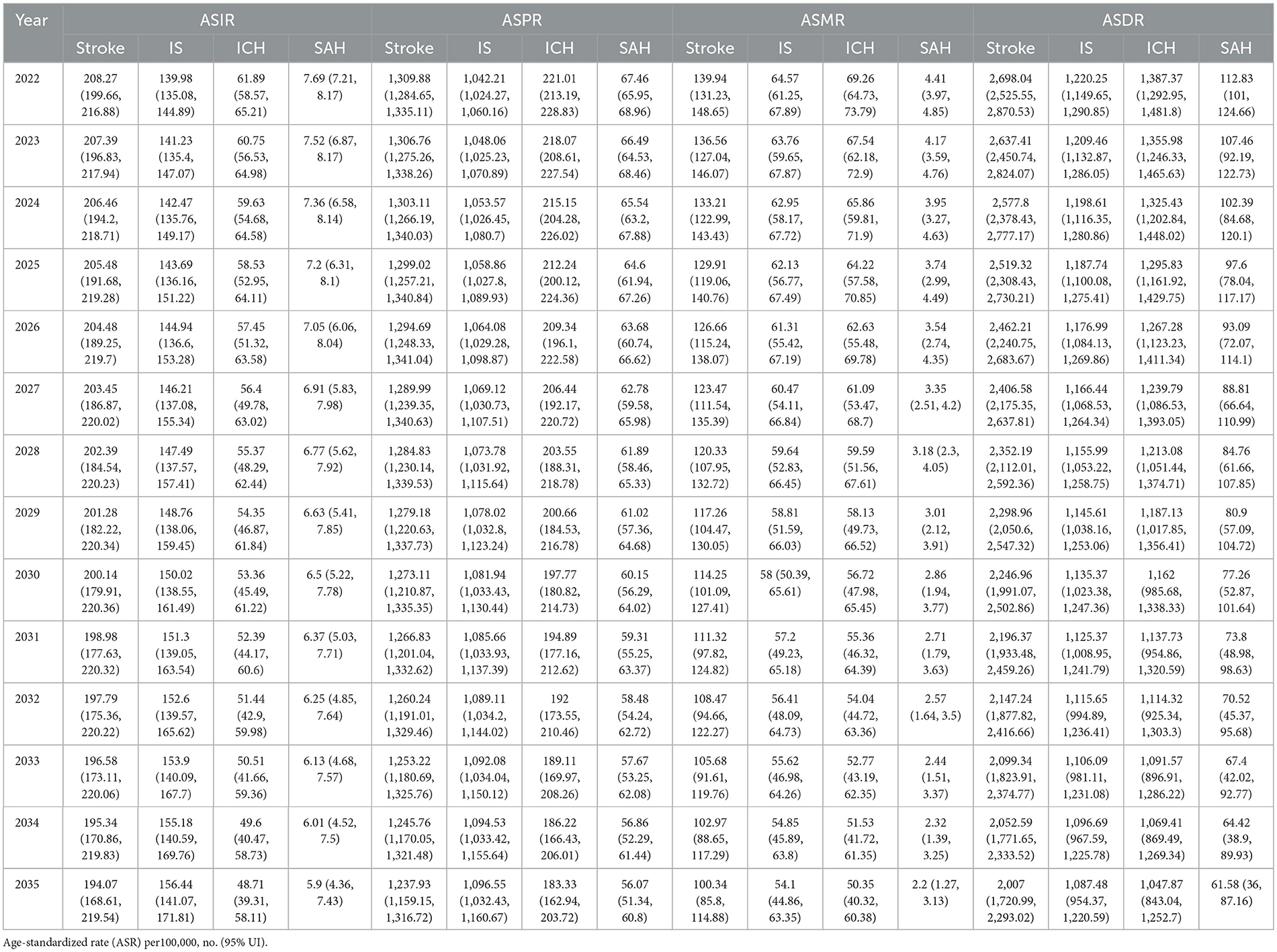 Table 5. Prediction of ASR for stroke and its subtypes in China from 2022 to 2035.